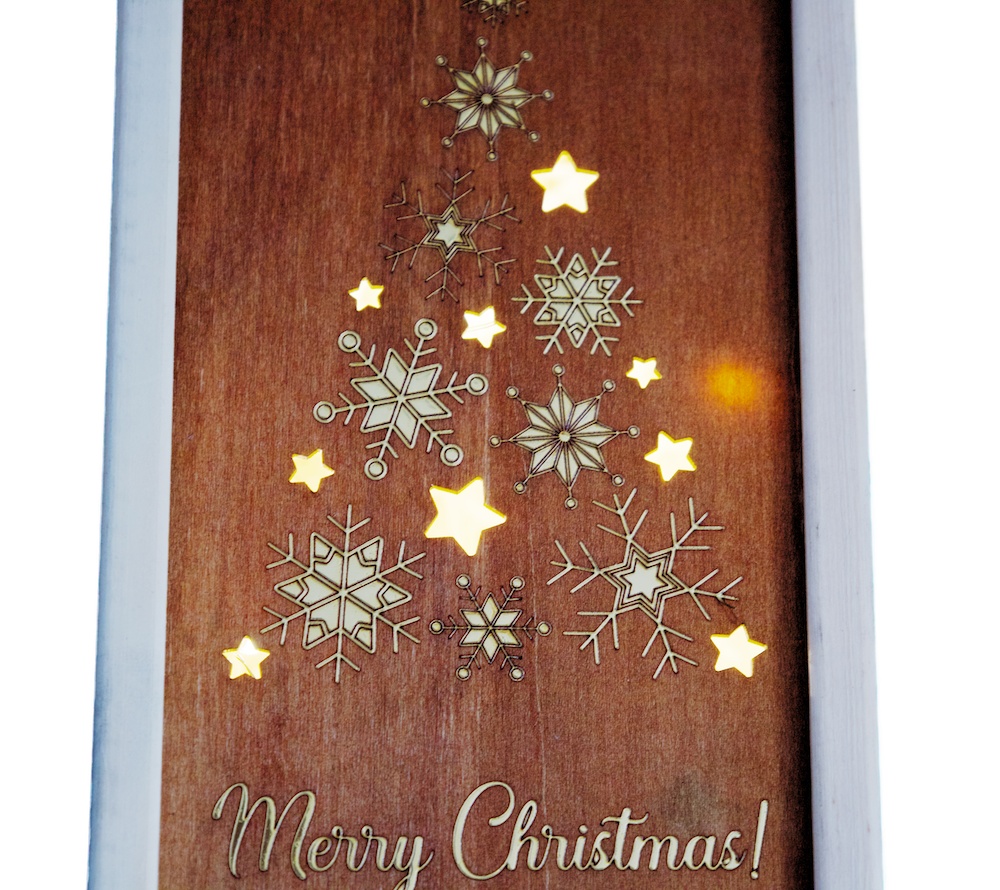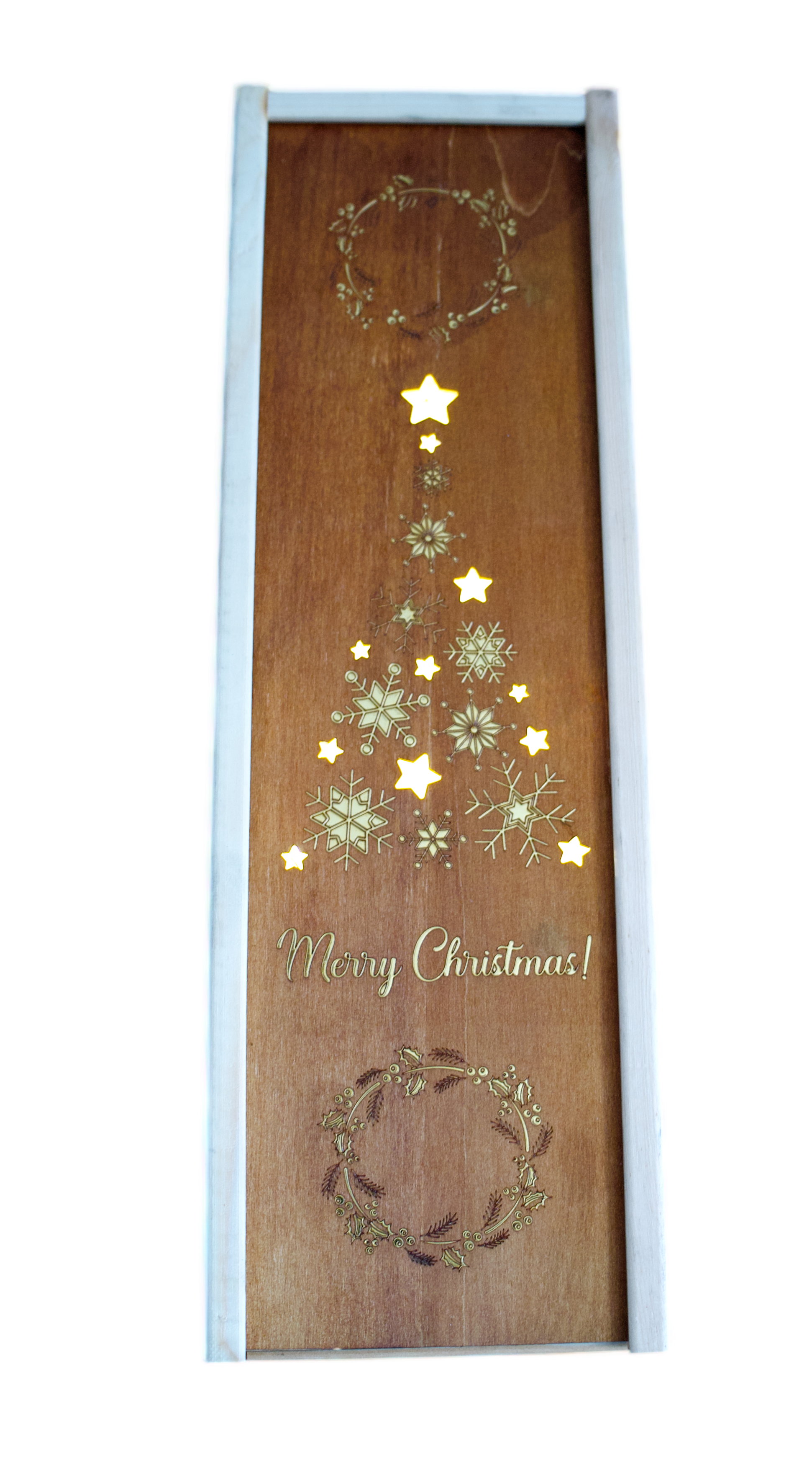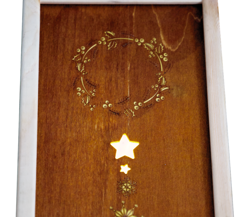 Het fraaie kerstontwerp met sterren en sneeuwvlokken maakt van dit kistje een echt pronkstuk – een subtiele ode aan de feestdagen en vakmanschap.