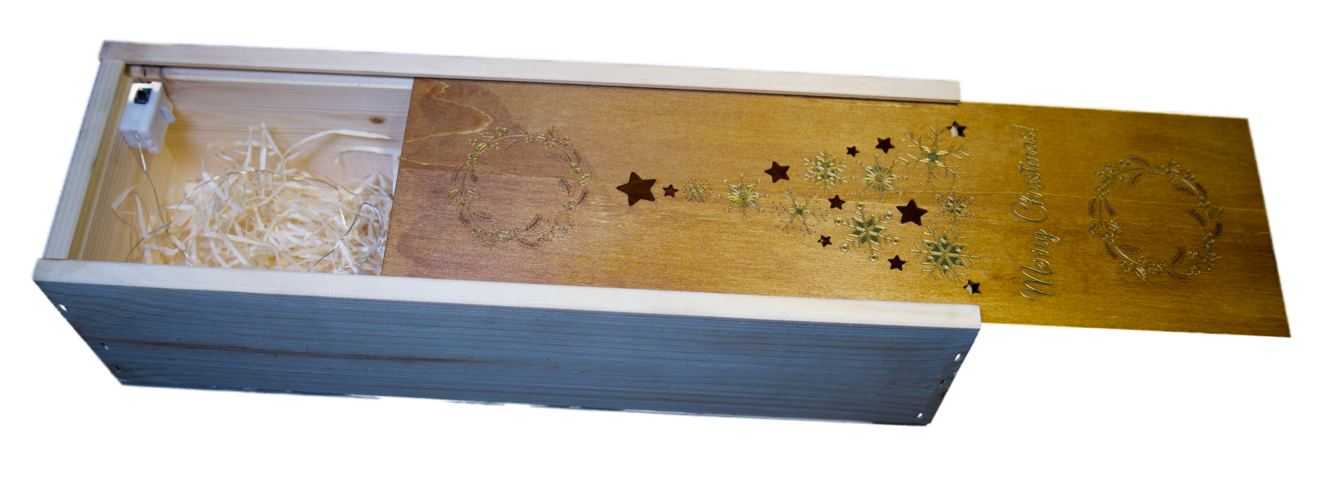 Voor een extra vleugje magie is het wijnkistje ook verkrijgbaar met een LED-strip met 20 lampjes.