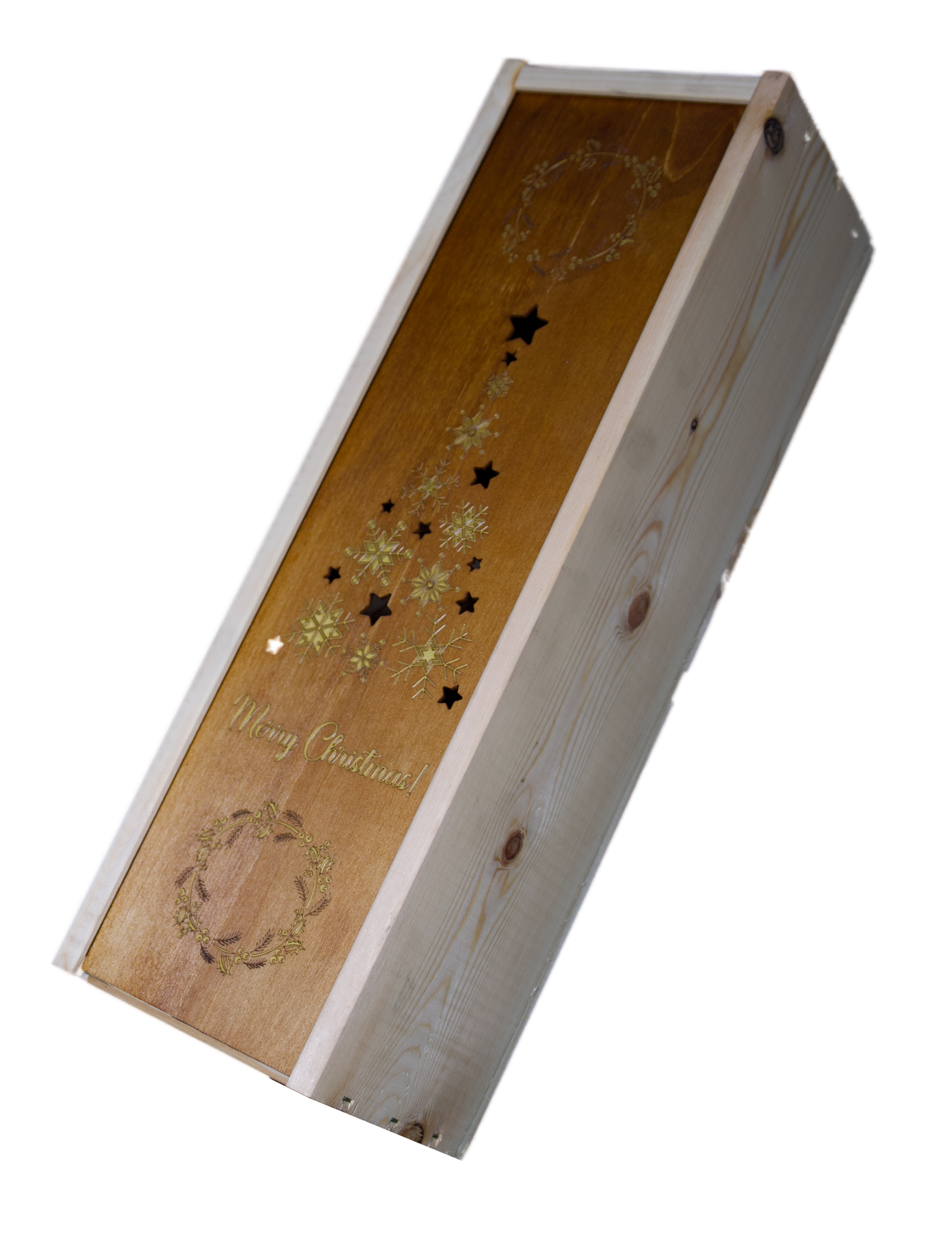 Of u nu op zoek bent naar een stijlvol kerstcadeau of een bijzondere manier om een fles wijn te schenken tijdens de feestdagen, dit wijnkistje is een absolute blikvanger.