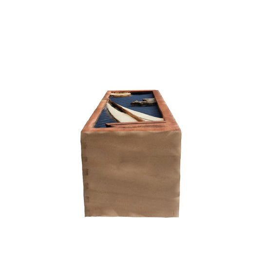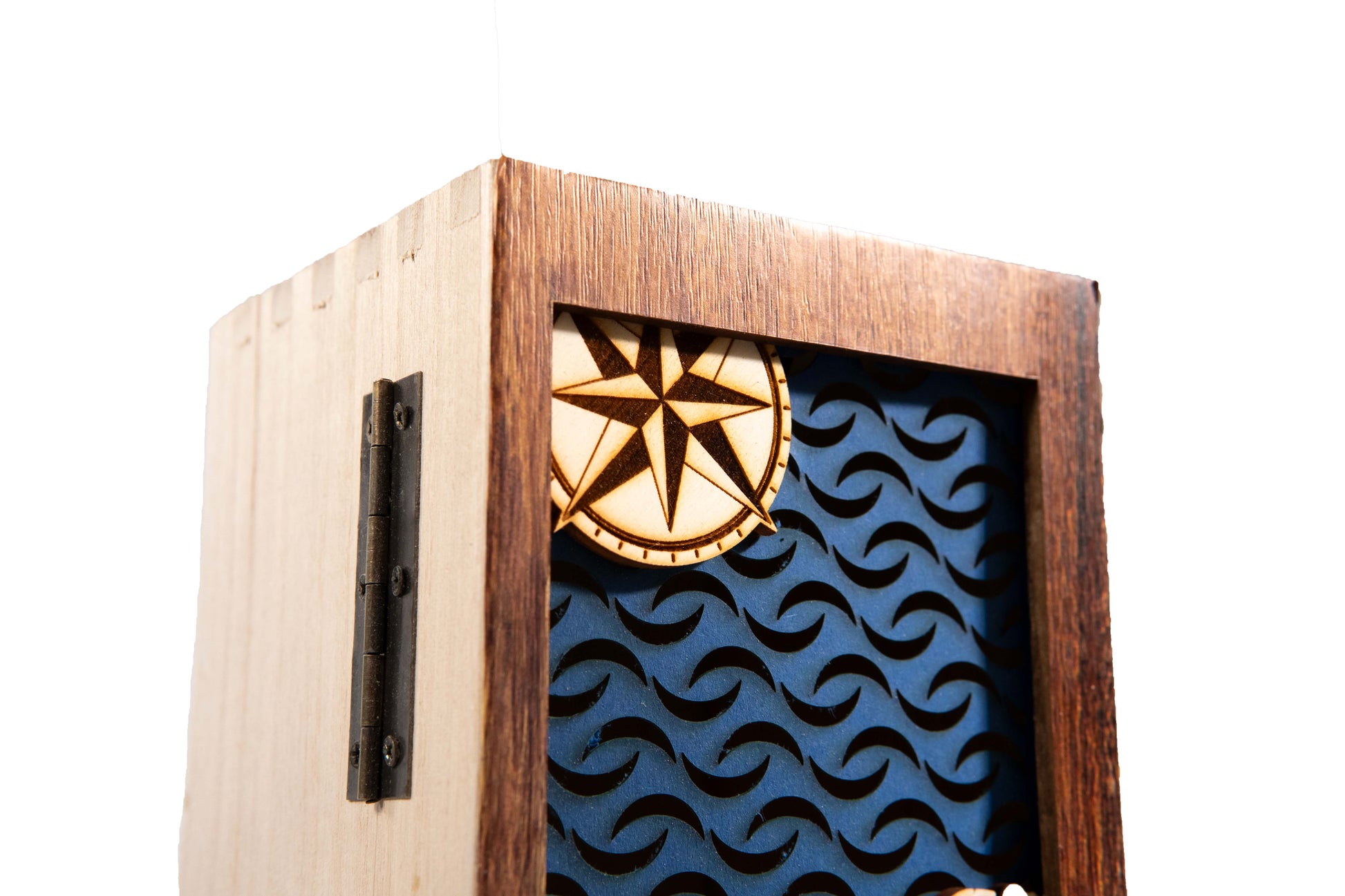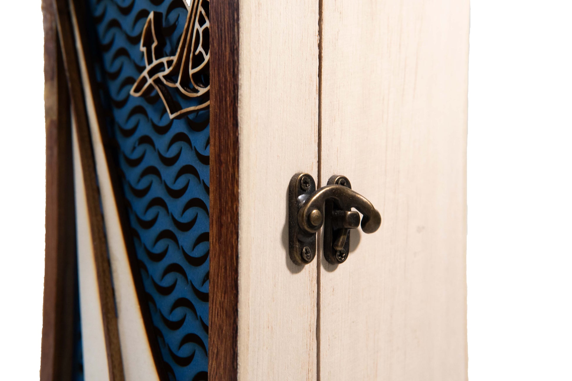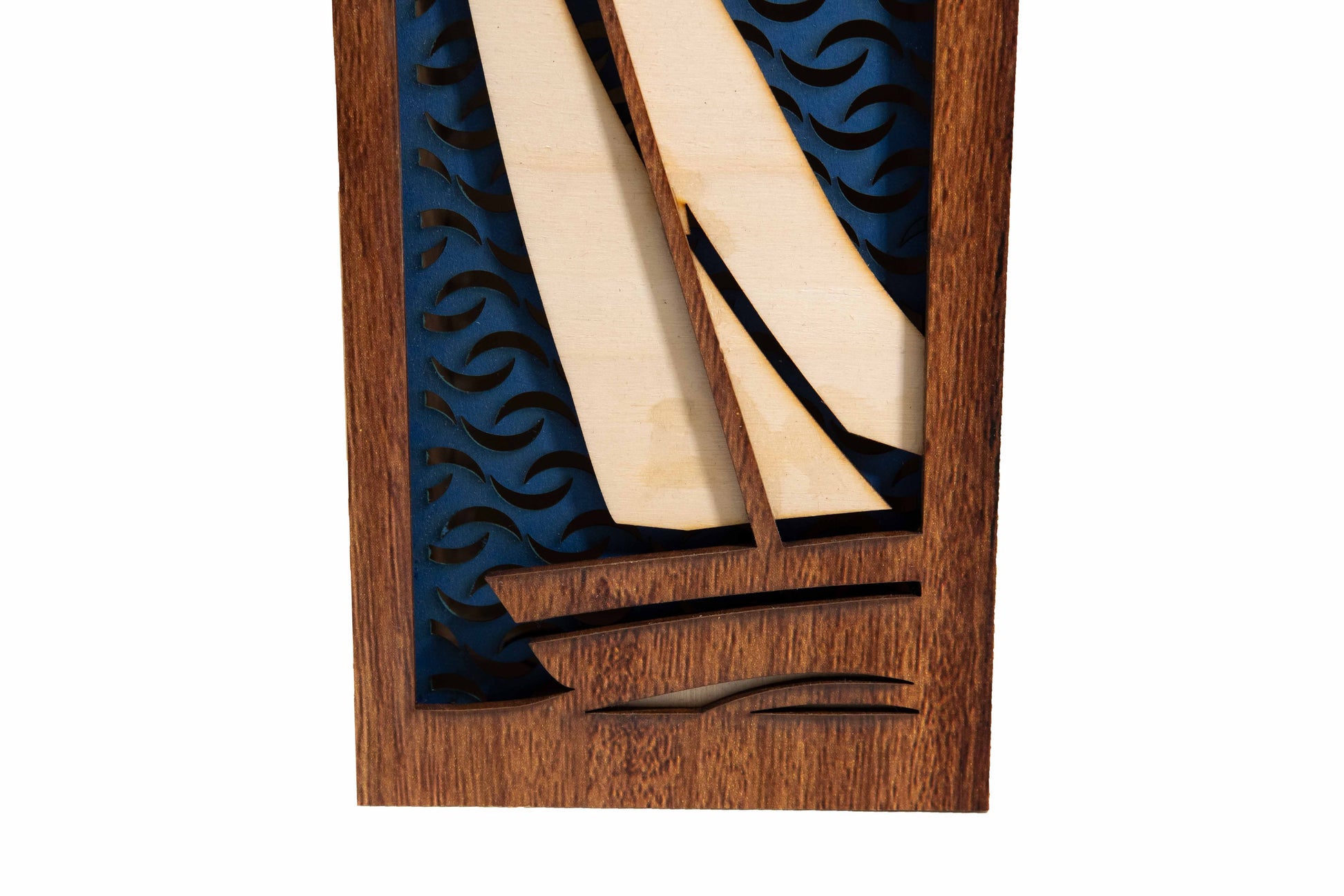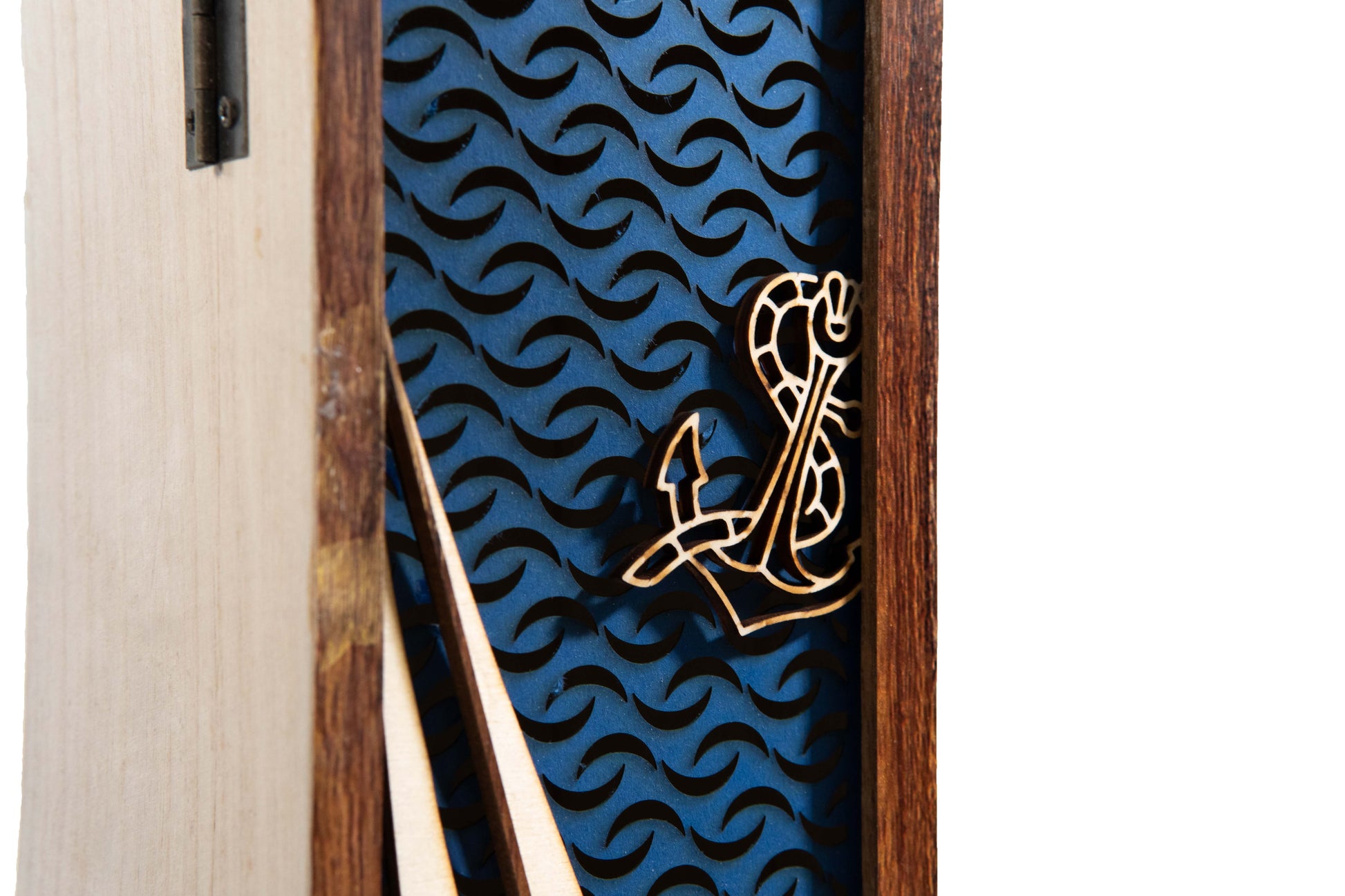 Breng wijn, kunst en zeilen samen in één verfijnd kunstwerk. Dit exclusieve wijnkistje is met de hand vervaardigd en ontworpen voor één bijzondere fles wijn. Elk kistje is een uniek kunstobject, zorgvuldig opgebouwd uit meerdere lagen hout met een prachtig uitgesneden zeilboot – een subtiele ode aan de nautische wereld.